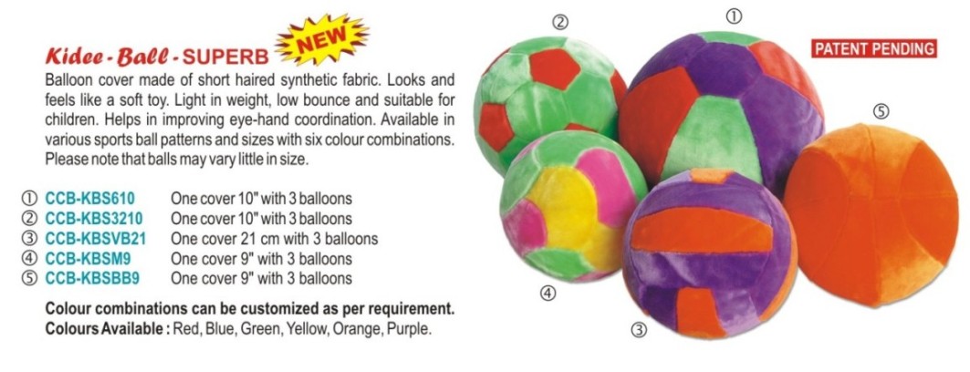 We produce high quality soft plush balls for children in assorted colours in different forms. It includes one cover and 2 to 3 latex bladders: