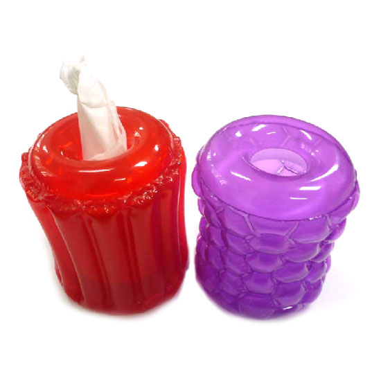This inflatable tissue holder is soft, elastic and beautiful. It has one suction cup on the base. It can be deflated for easy storage in the office, home and private car.