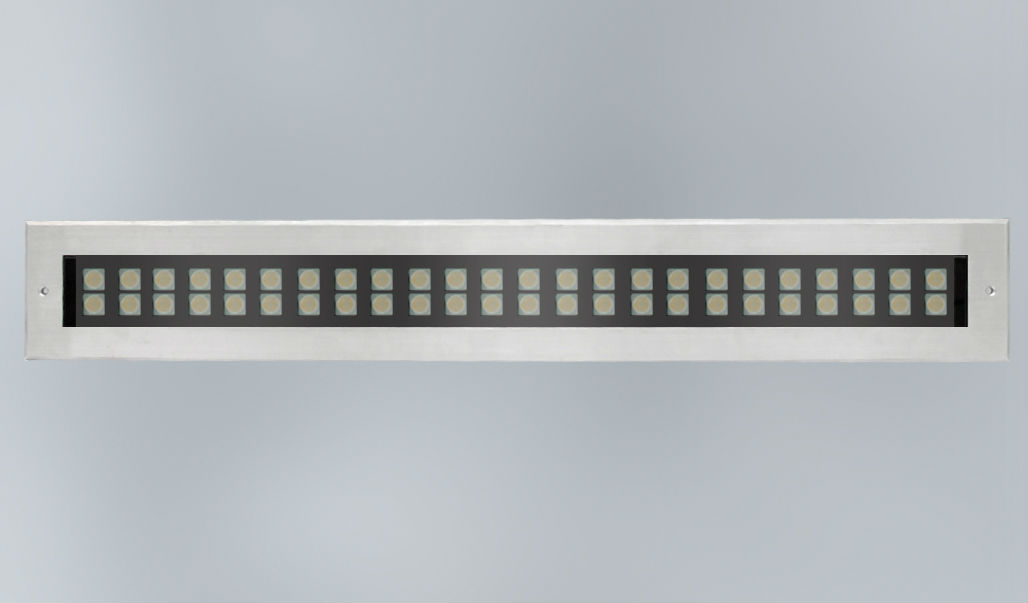Featured here is a inground LED light with an extruded aluminum alloy body and a stainless steel front plate. It has a brushed metallic exterior and has two rows of LEDs inside. This inground LED light can provide bright illumination and is suitable for homes, gardens and more.