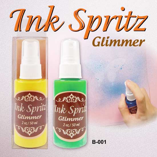 This is a bottle of ink sprits glimmers available in different colors. It is designed for creating colorful sparkly and shimmering images on papers, chipboards and most surfaces. This bottle of ink sprits glimmer is acid free and non-toxic.