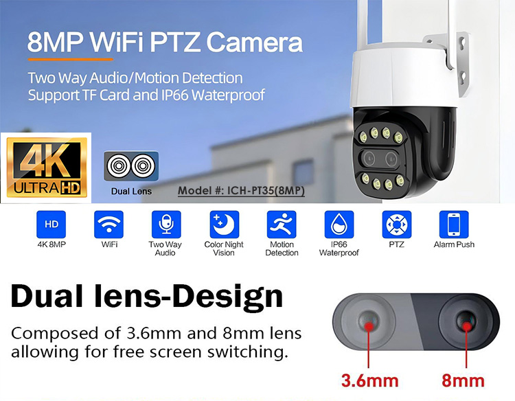 Innotronik 4K 8MP Dual Lens Outdoor PTZ Camera Camhipro #ICH-PT35