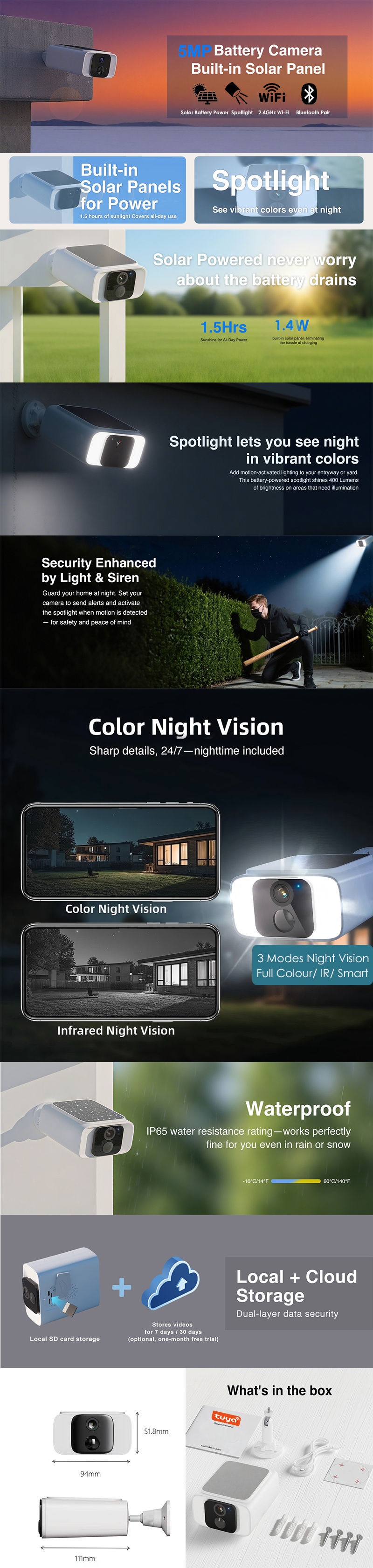 Please check our new product 100% Wireless Smart Tuya Spotlight Solar Battery Camera