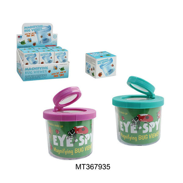 Highlighted here is a set of 12 magnifying cups for insect observation use. The cup has a clear body and has a round lid with a magnifying glass on top. It offers a clear view of the interior and is great for kids to catch and observe insects.