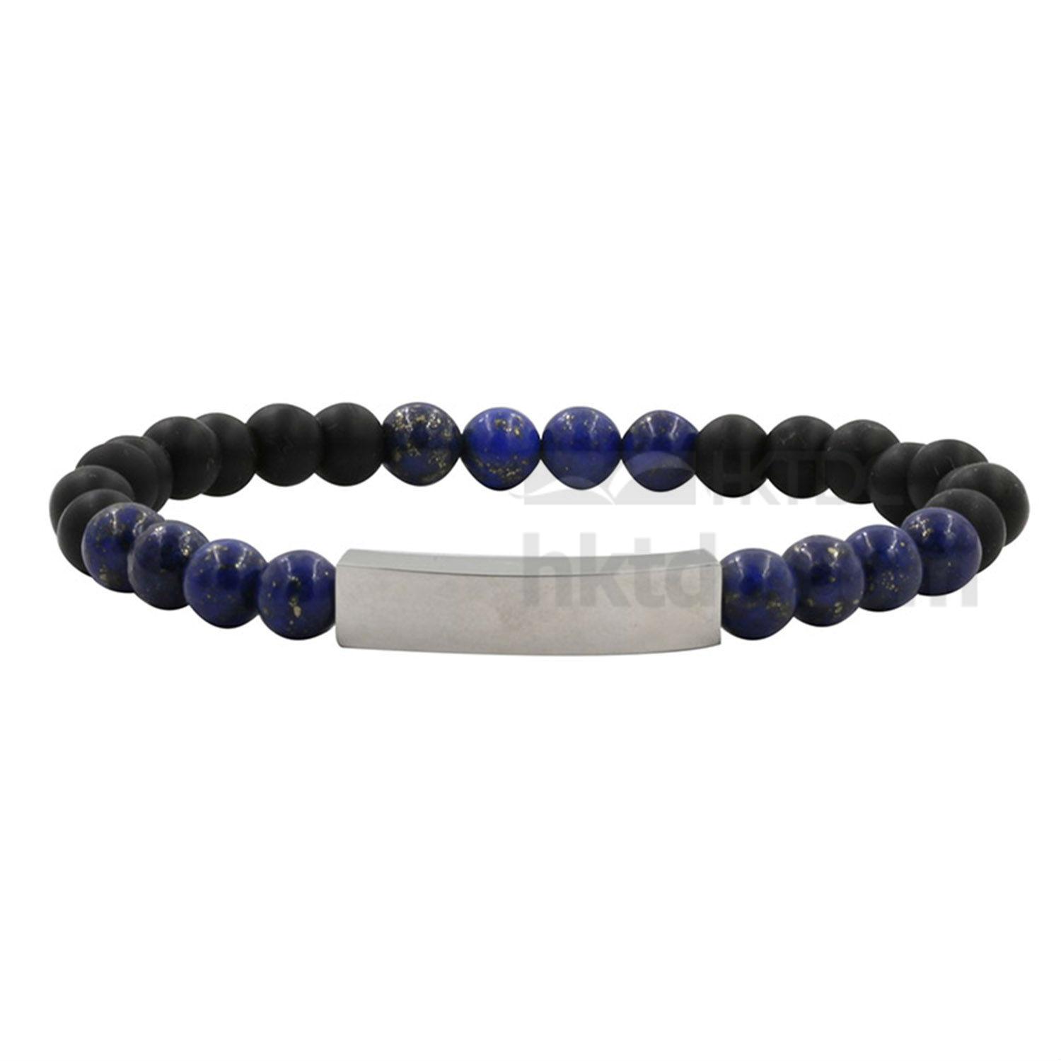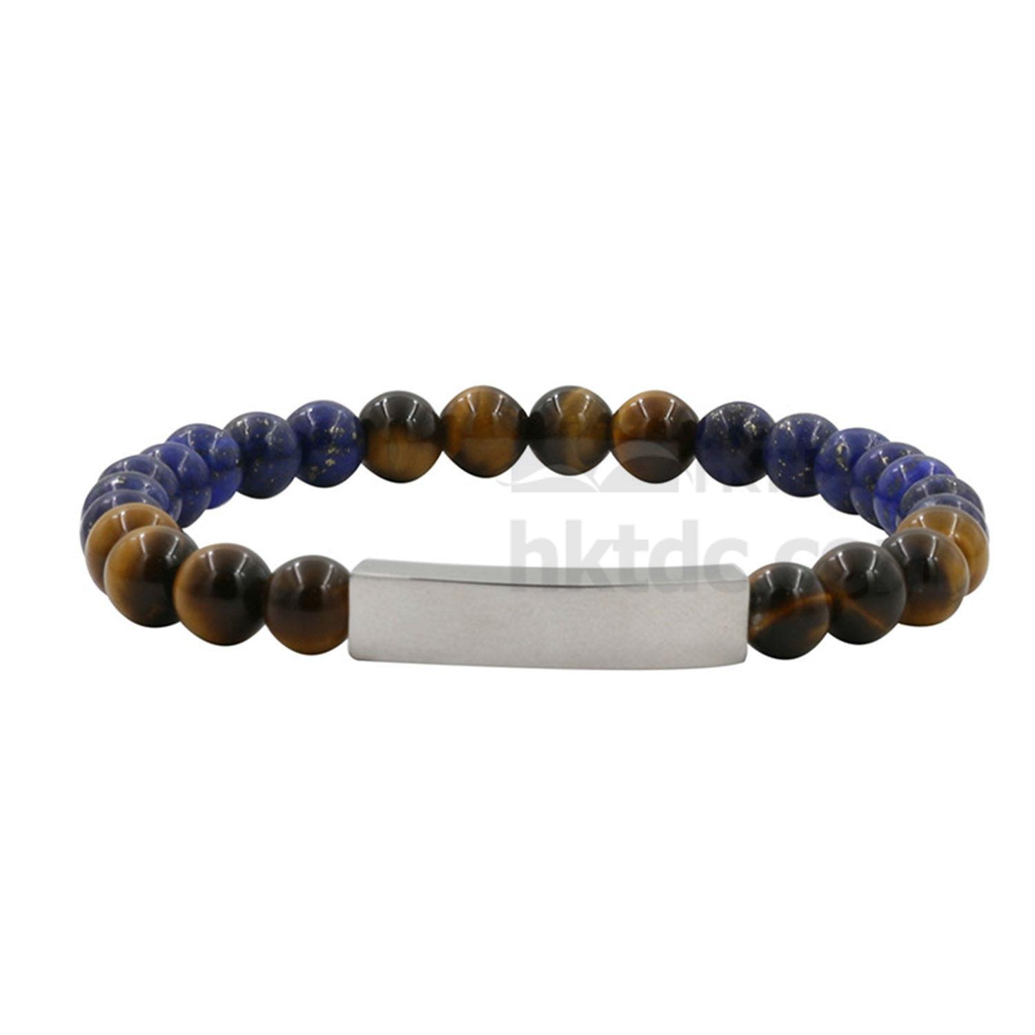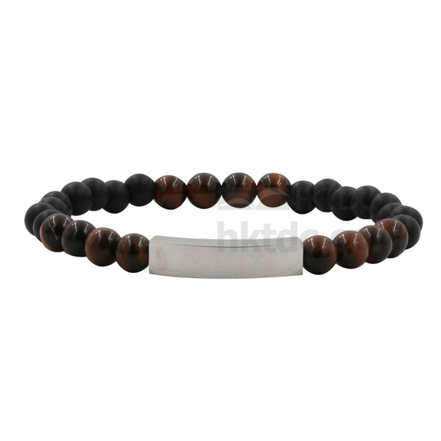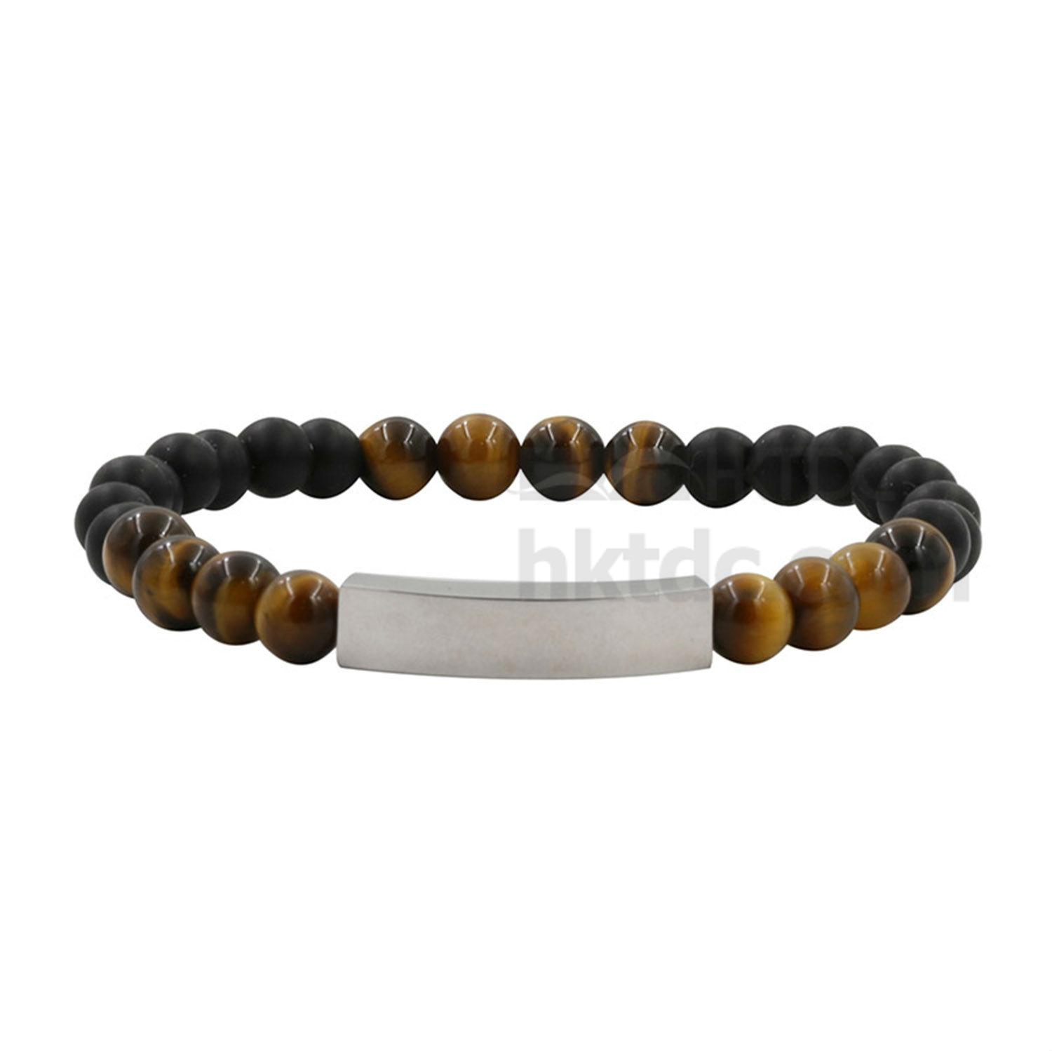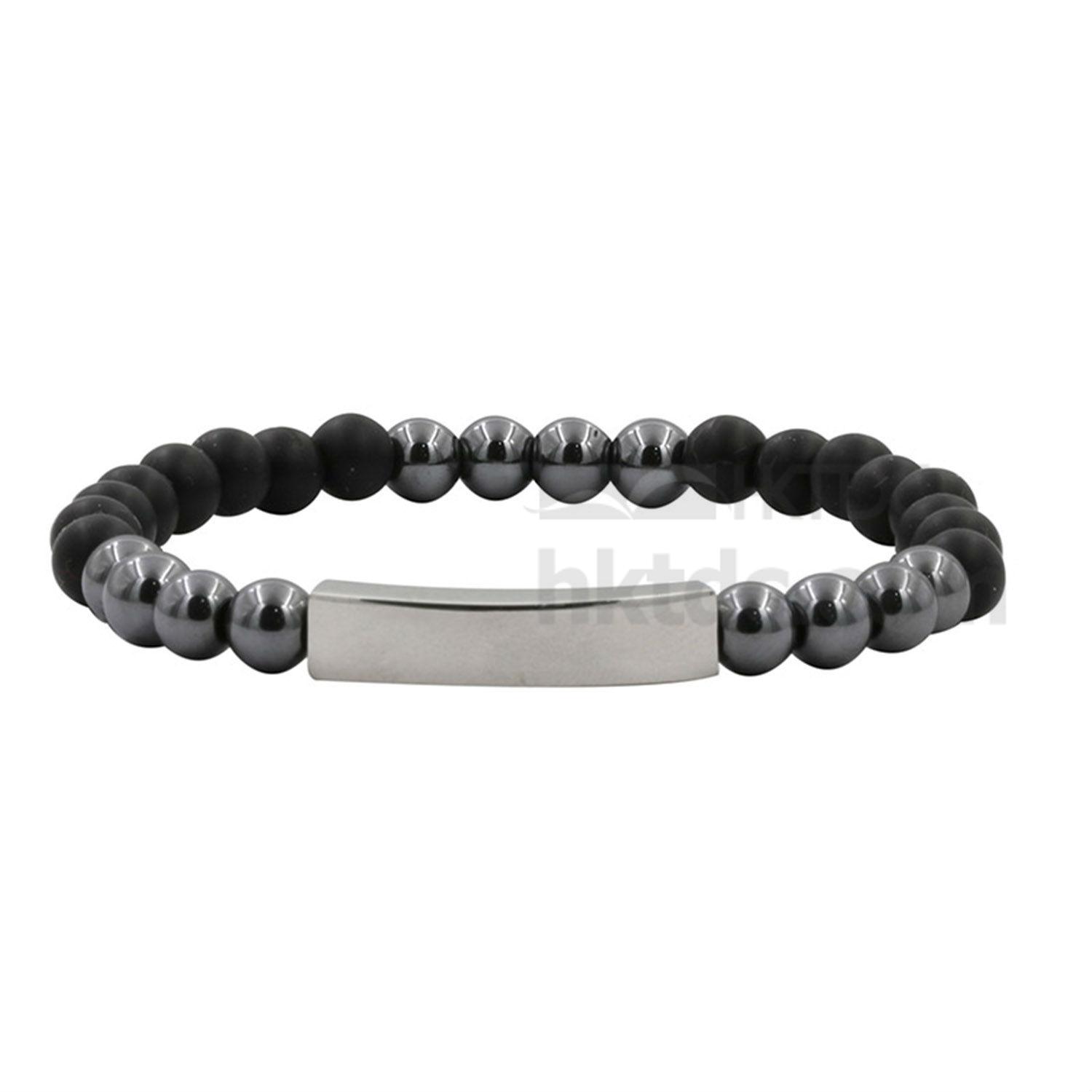 This bracelet is constructed of sphere shaped beads in black and metallic tone. It comes with a rectangular metallic plate and can be engraved with inspirational words and messages. The bracelet flaunts an elegant design and can offer daily motivation.
