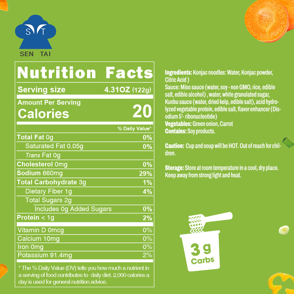Sauce: Miso sauce (water, soy- non GMO, rice, edible salt, edible alcohol), water, white granulated sugar, Kunbu sauce (water, dried kelp, edible salt), acid hydrolyzed vegetable protein, edible salt, flavor enhancer (Disodium 5′- ribonucleotide).