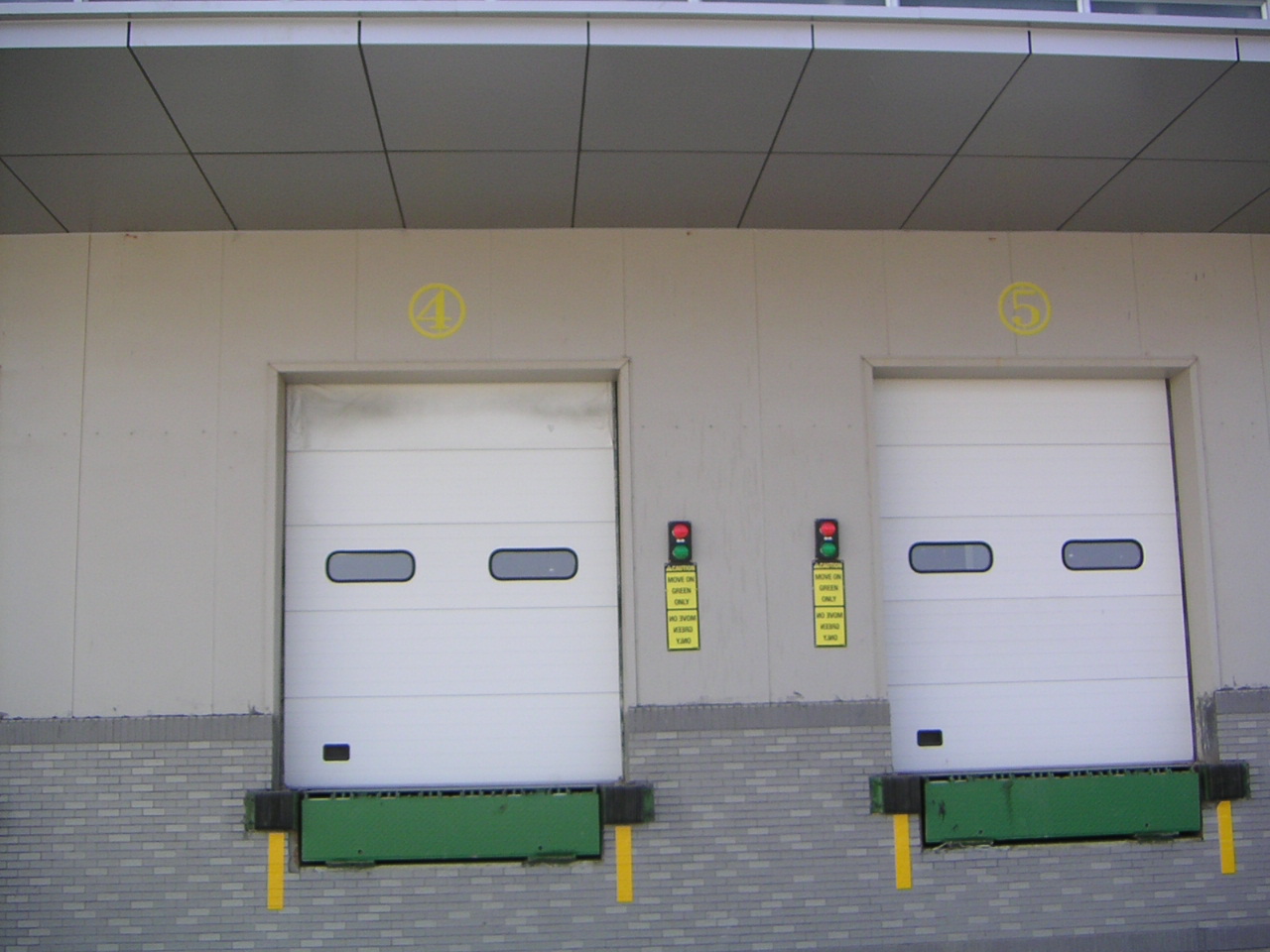 Weatherstripping/Seals - Doors shall be furnished with a complete weatherstripping system to reduce air infiltration. Joints between sections to be provided with two bulb-type seals. Thermal break shall be hot melt bead type. Bottom of door to have flexible U-shaped vinyl seal encased in full length extruded aluminum retainer to conform to floor irregularities. Weatherstripping shall be replaceable without removal of track, angle mounting, or door hardware.