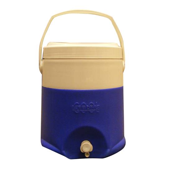 This insulated water jug has function of keeping 13 liters of liquid cool for two to three hours. There is a stopper with button at the bottom. Gently press button to release water.