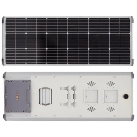 This solar outdoor street light comes in an integrated design and has a solar panel on top. It has a durable housing in rectangular shape and is well-constructed to withstand outdoor weather conditions. The solar street light is equipped with multiple light chips as the light source and can provide bright and efficient lighting performance.