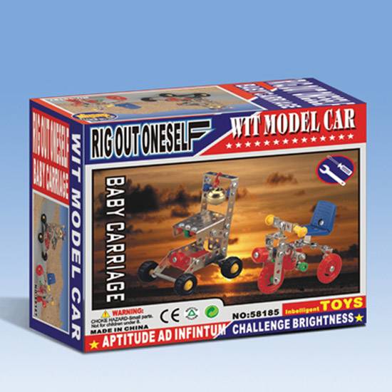 This is an educational toy that requires a kid to assemble scattered parts. It consists of screws, metal components and plastic components. It allows kids to fully utilize their imagination.