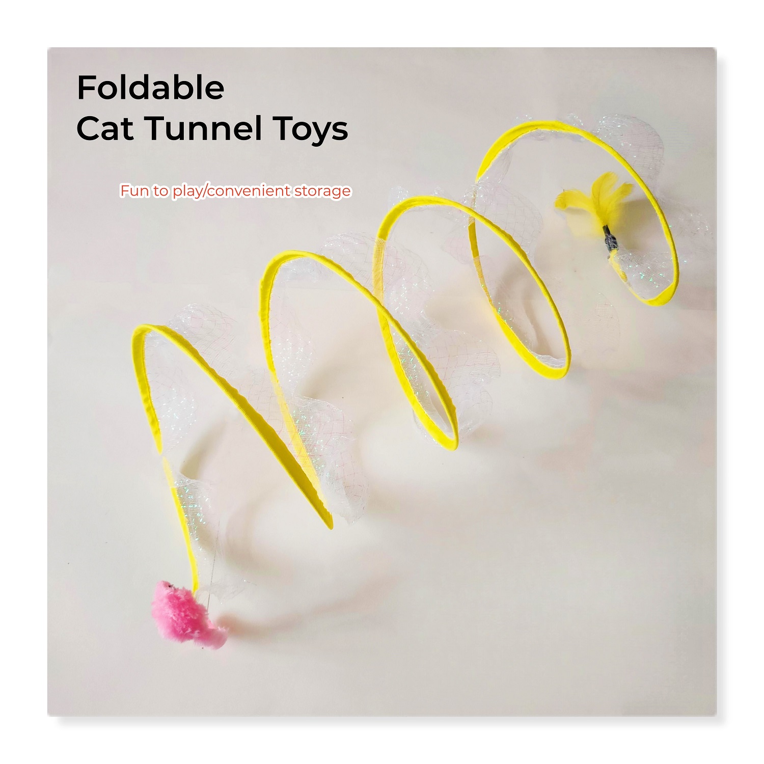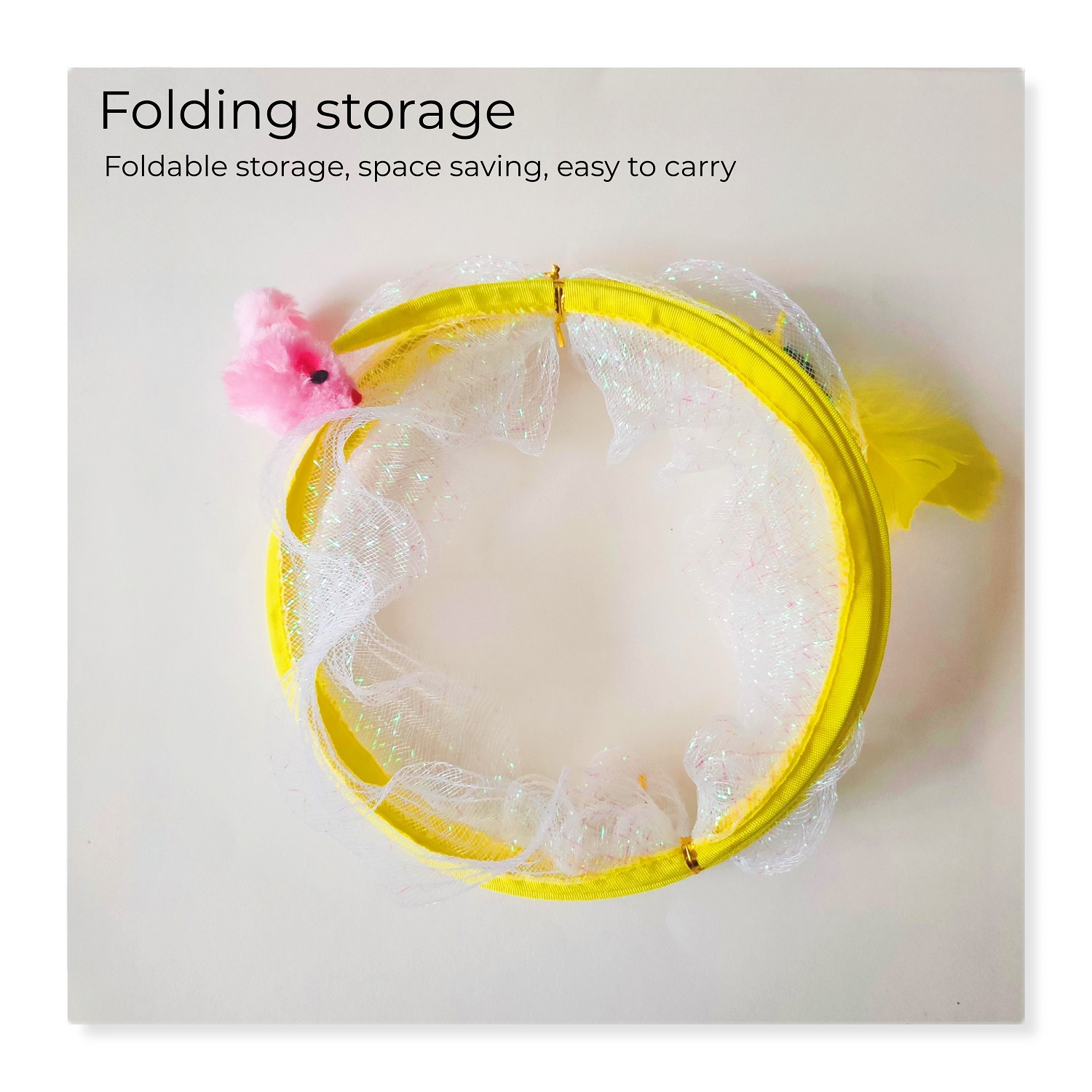 With feather with bell and plush mice at one end, the cat tunnel can well attract pets attentions, and it can not only provide pets to play alone but also allow you and your pet to interact together. When not in use, it can be foldable for storage, which saves space.