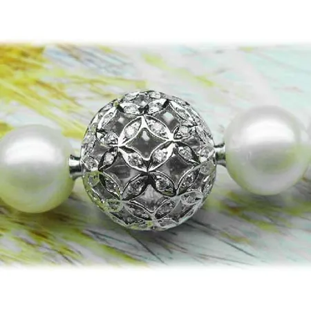 This is an interchangeable clasp that is finely crafted of white gold in a highly glossy finish. The dazzling small diamonds are fully paved to accent this ball clasp in a brilliant way. This jewelry clasp is an ideal addition to complete your jewelry designs.