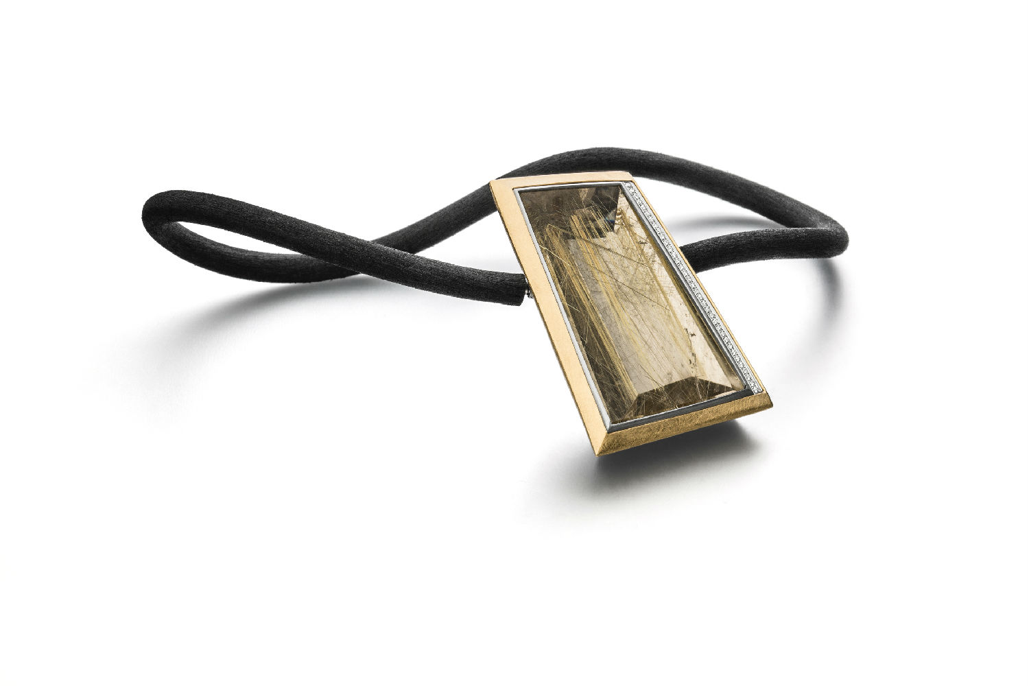 One of a kind vario clasp with Rutile Quarz and diamonds on a rubber necklace
