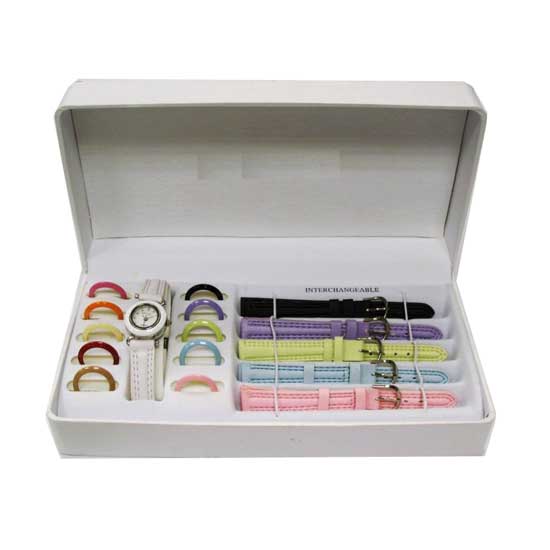 This interchangeable gift watch set comes with colorful watch accessories including rings and straps to suit your preference. The robust housing is durable and offers an extra-long serving time. This gift watch set is an excellent choice for fun-loving young ladies.