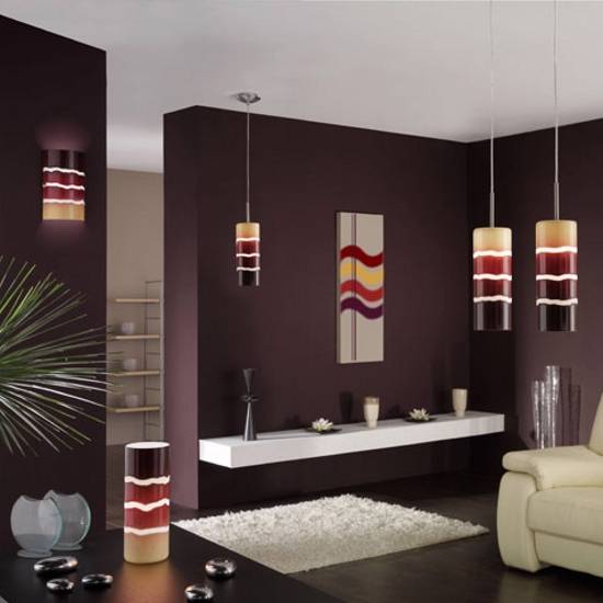The lamp shade is cyclical with a vertical gradual change of colour on it