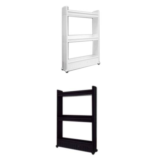 These stacking cupboards are designed with 4 moving wheels. Each has 3 or 4 partitions and it can be placed between a sink and a refrigerator for storing things orderly.