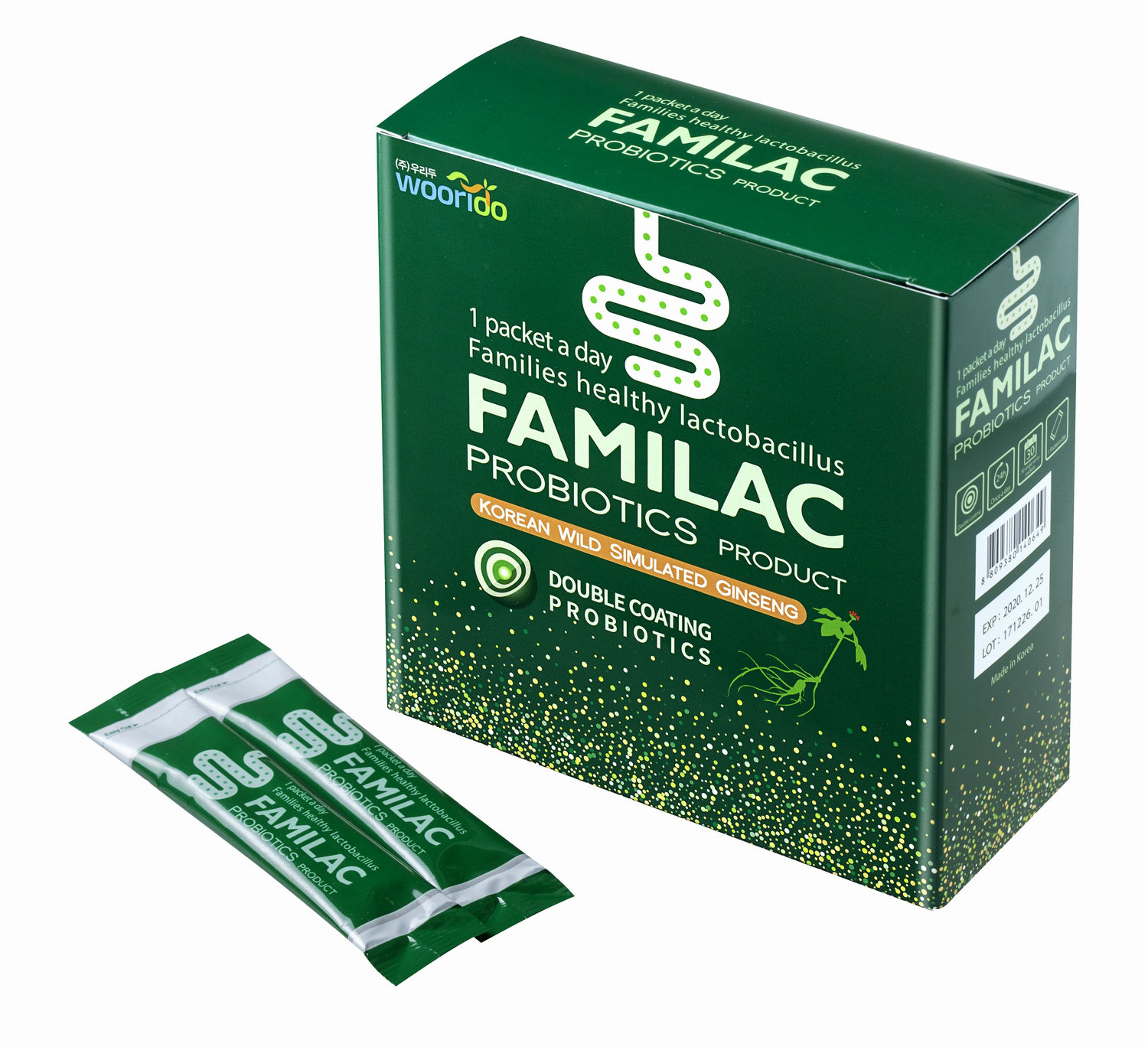 Familac uses the double-coated lactobacilli from the international lactobacillus company ROSELL and wild simulated ginseng, chicory fiber and vitamin C as additives.