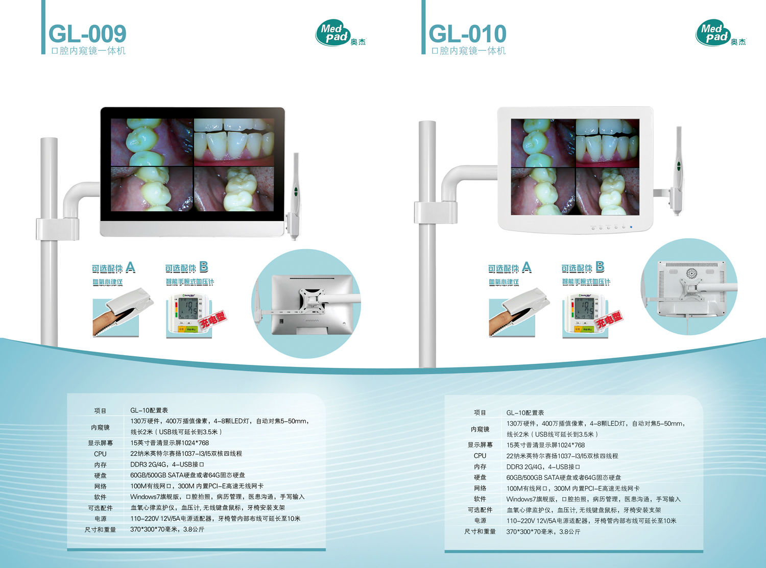 8、 High definition USB 3.0 intraoral camera, 8 LED light, 3-button