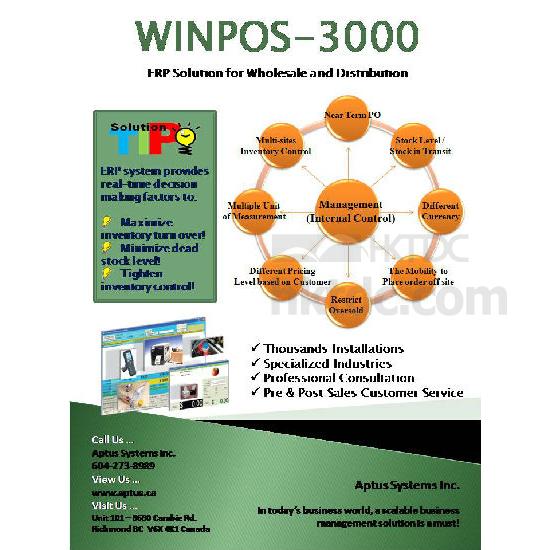 Wholesaler specific features: sales quotation, master pick slip, pack slip, invoice, credit note, debit note with return reason and inventory control, truck routing, freight allocation, pick sequence assignment, tariff code for importing company, automatically allocate total cost to processed items, label printing for catch weight items, lot no. tracking, multi-warehouse up to 4 locations.