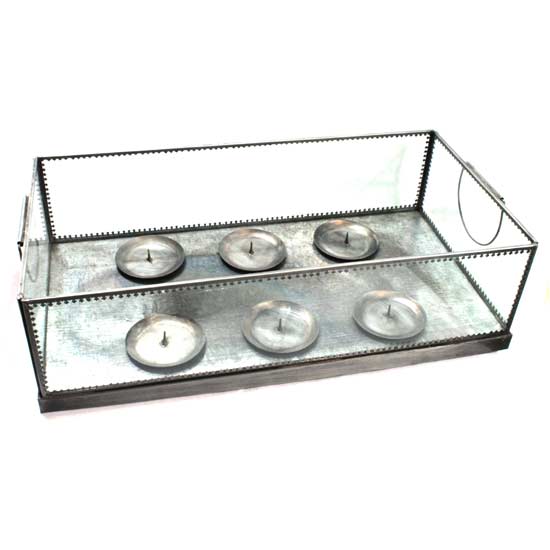 Displayed here is an iron candle tray with a minimalist design in a shape of a rectangle. The needles ensure candles can be nested securely on the tray. Put a votive decoration in your living room with this simple and beautiful candle tray.
