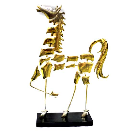 This iron horse decoration boasts a unique design. The body is made up of finely polished patches connected with wires. The legs feature strips for added uniqueness. Decorate your house with this special item.
