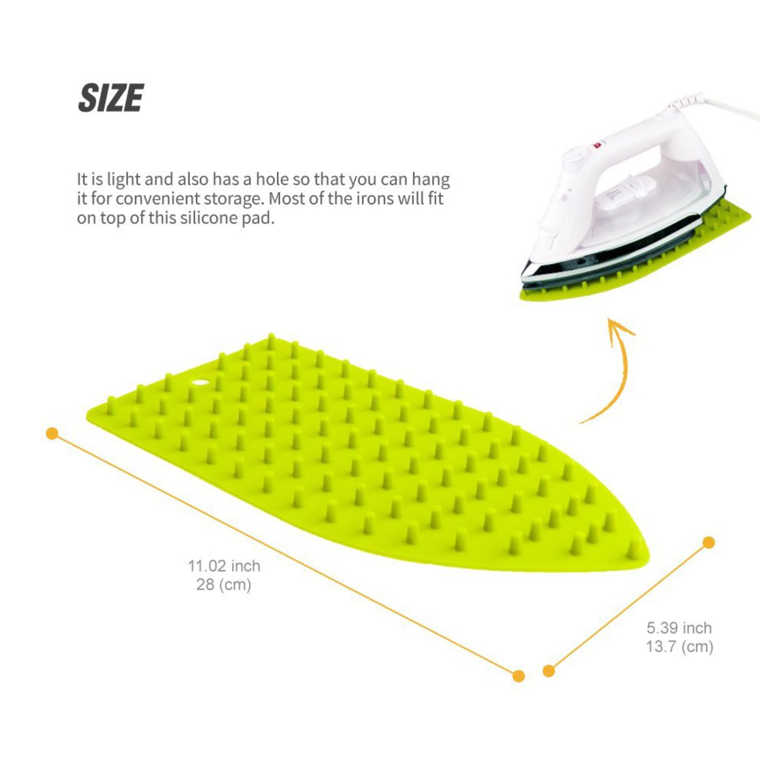 HEAT RESISTANT: It can handle up to 445°F of heat resistance. Silicone is known for its ability to maintain its properties and structure over a wide temperature range, which is good enough to handle most irons. Raised silicone spikes (about .38" long also helps your iron to cool faster.