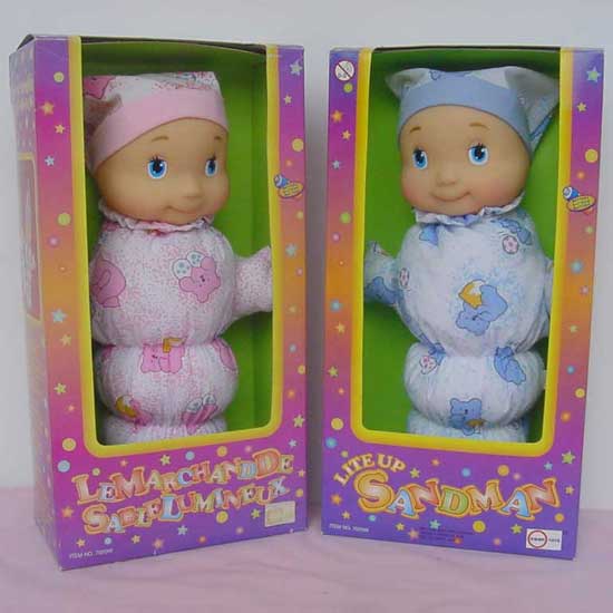 Showcased is a lovely baby doll featuring a blinking function. The baby comes with a big head and a soft and patterned body. Press its body and its lovely smiling face will glow.