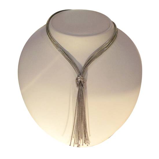 This princess-length necklace is made of 925 silver. It comprises several rhodium plated silver chains that are knotted together. This necklace compliments any outfits from day to evening wear.