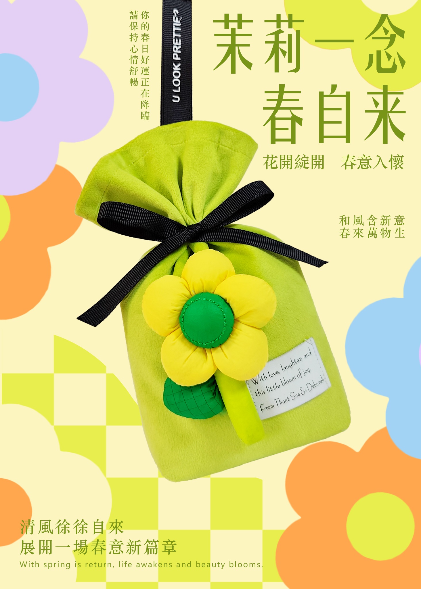 JA-414 is a handcrafted fragrant sachet that blends soft plush fabric with whimsical floral accents to bring a touch of spring into any space. Offered in three gentle hues—Pink, Mint Green, and Blue-Green—each sachet features layered 3D flowers, delicate green leaves, and a sleek black satin bow. A sturdy hanging strap is included, making it easy to display on closet handles, car rearView mirrors, or window ledges to instantly brighten your space.