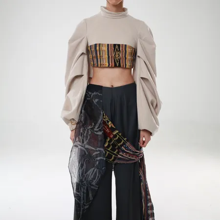 JESSLYN CRYSTALIAJC/SS/WLPSB/GRWide-leg pants featuring bold accents of Sabu weaving for a refined cultural edge.