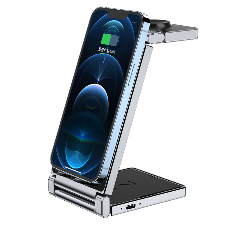 JEDI 3 In 1 Flat Folding Wireless Charging Station Stand Zinc Alloy Wireless Charger