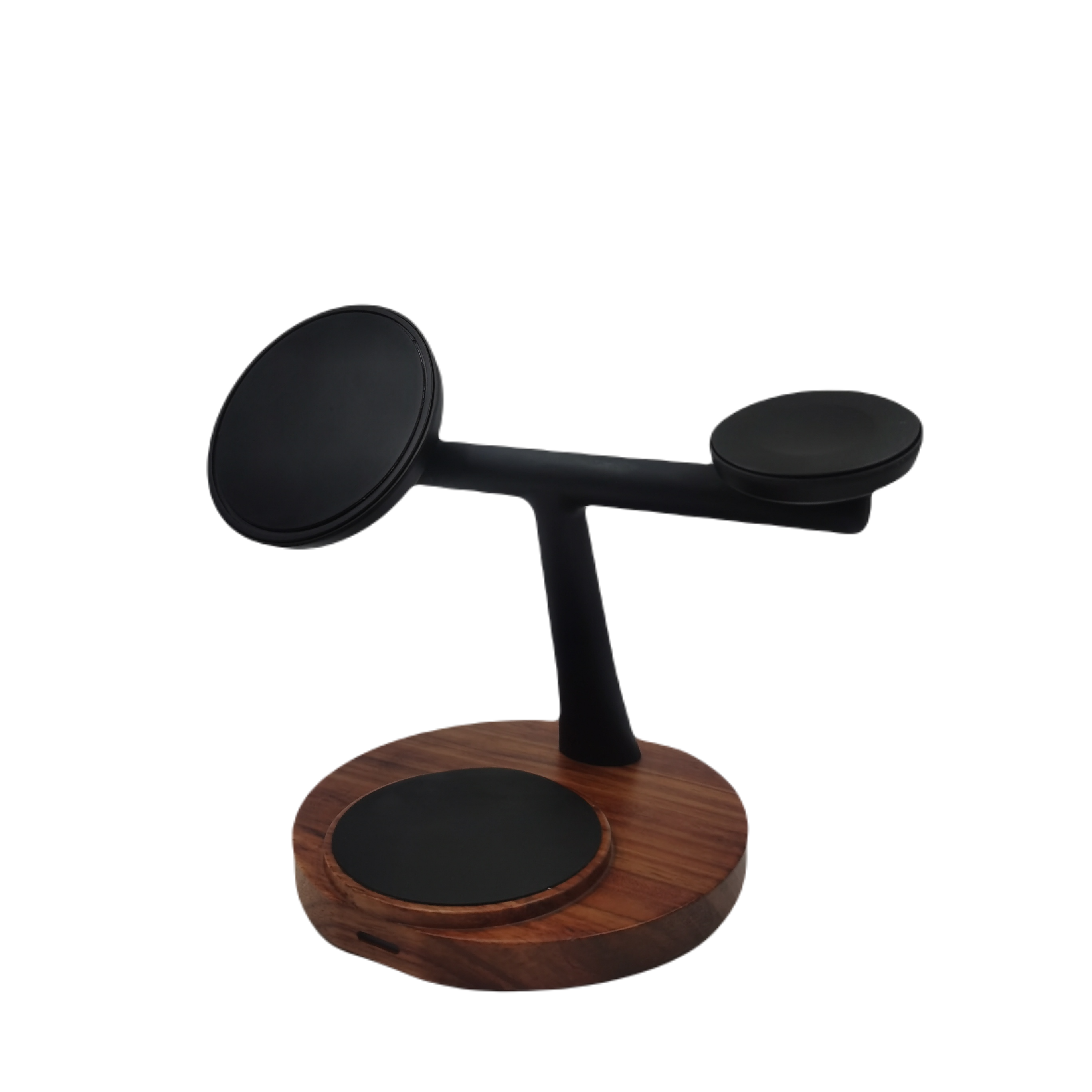 JEDI Wholesale 2025 Unique Design 3 in 1 Real Nature Wooden Round Base Charging Stand Magnetic Wood Wireless Charger With OEM