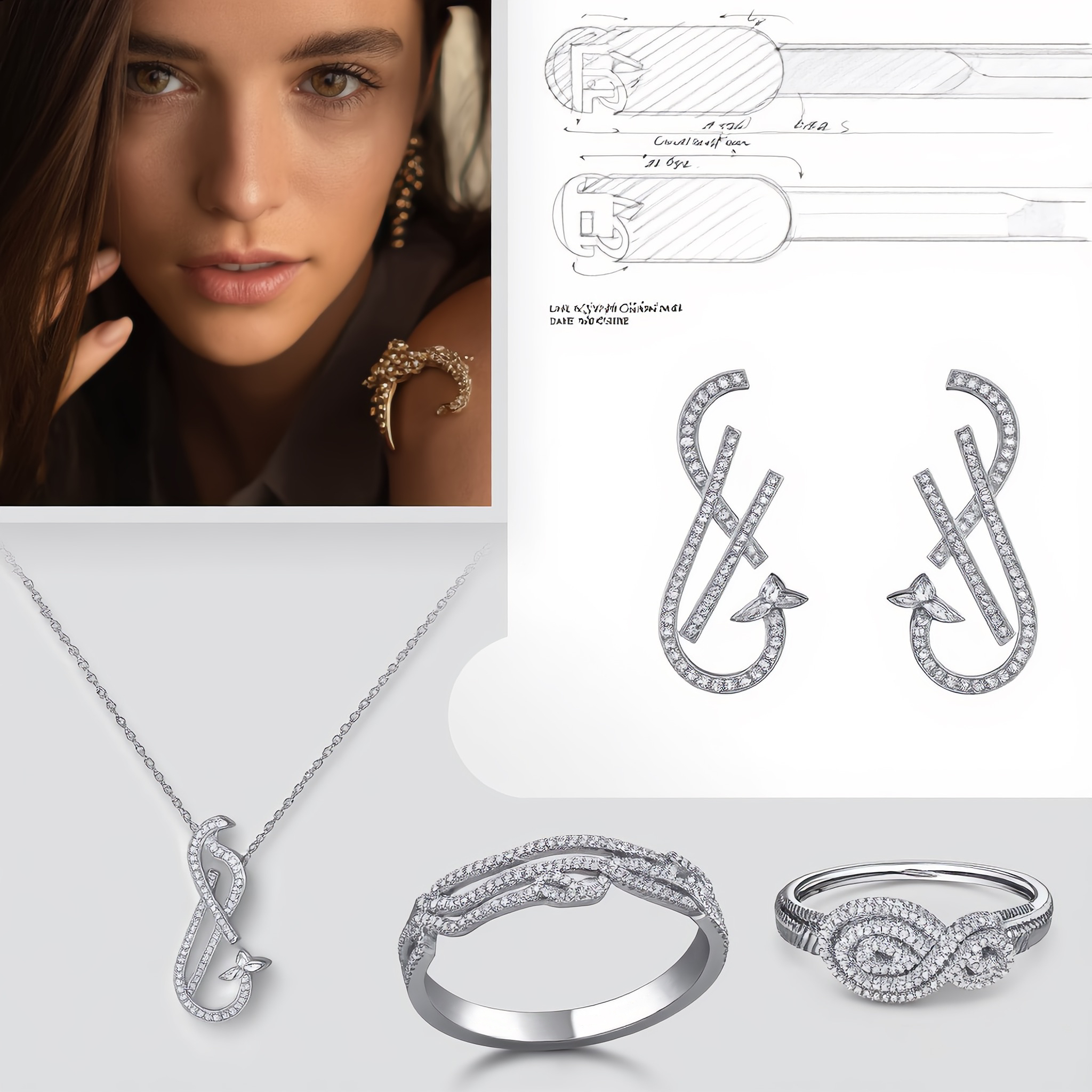 This is a four piece "YouCan" themed 18K gold set with cultivated diamonds designed specifically for young women who pursue individuality, confidence, and fashion sense. The design core revolves around the spirit of "infinite possibilities, self strength, and positive declaration" contained in "YouCan", presented with modern, smooth, and slightly architectural lines, ensuring that each item is both novel, unique, and versatile.