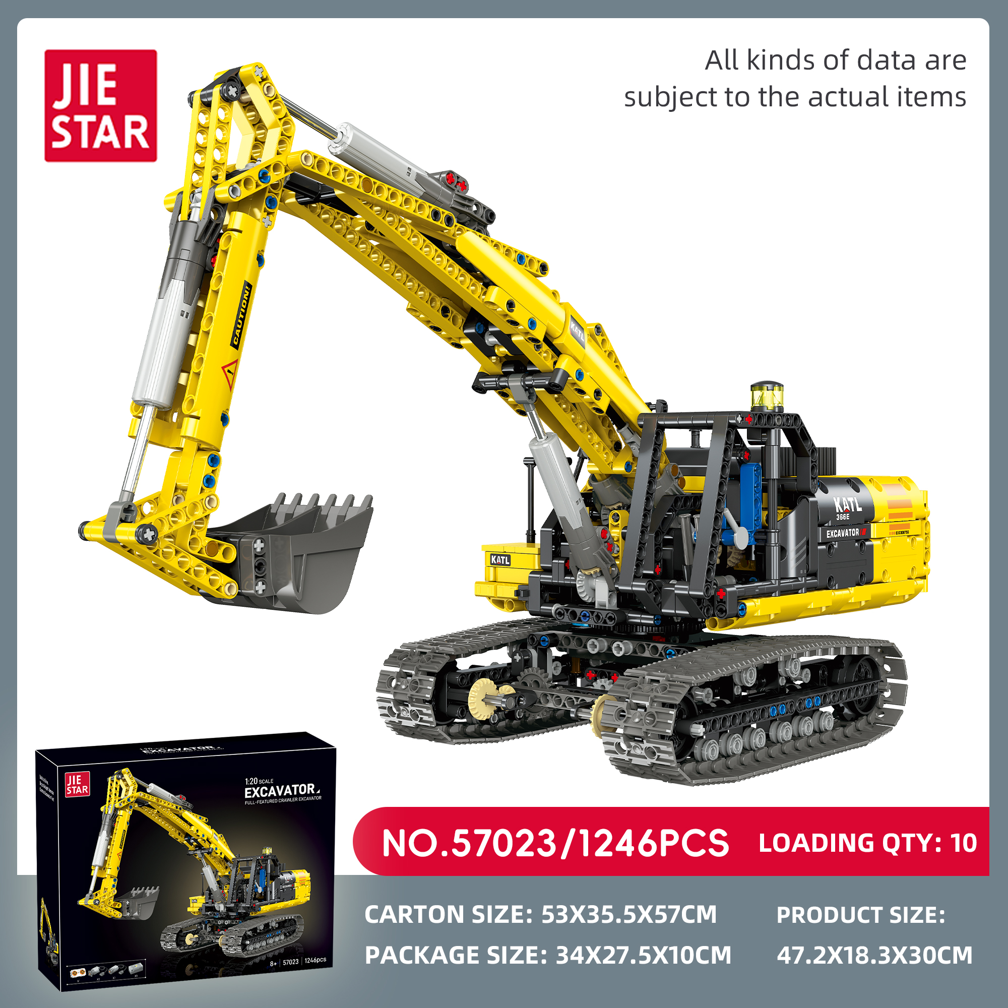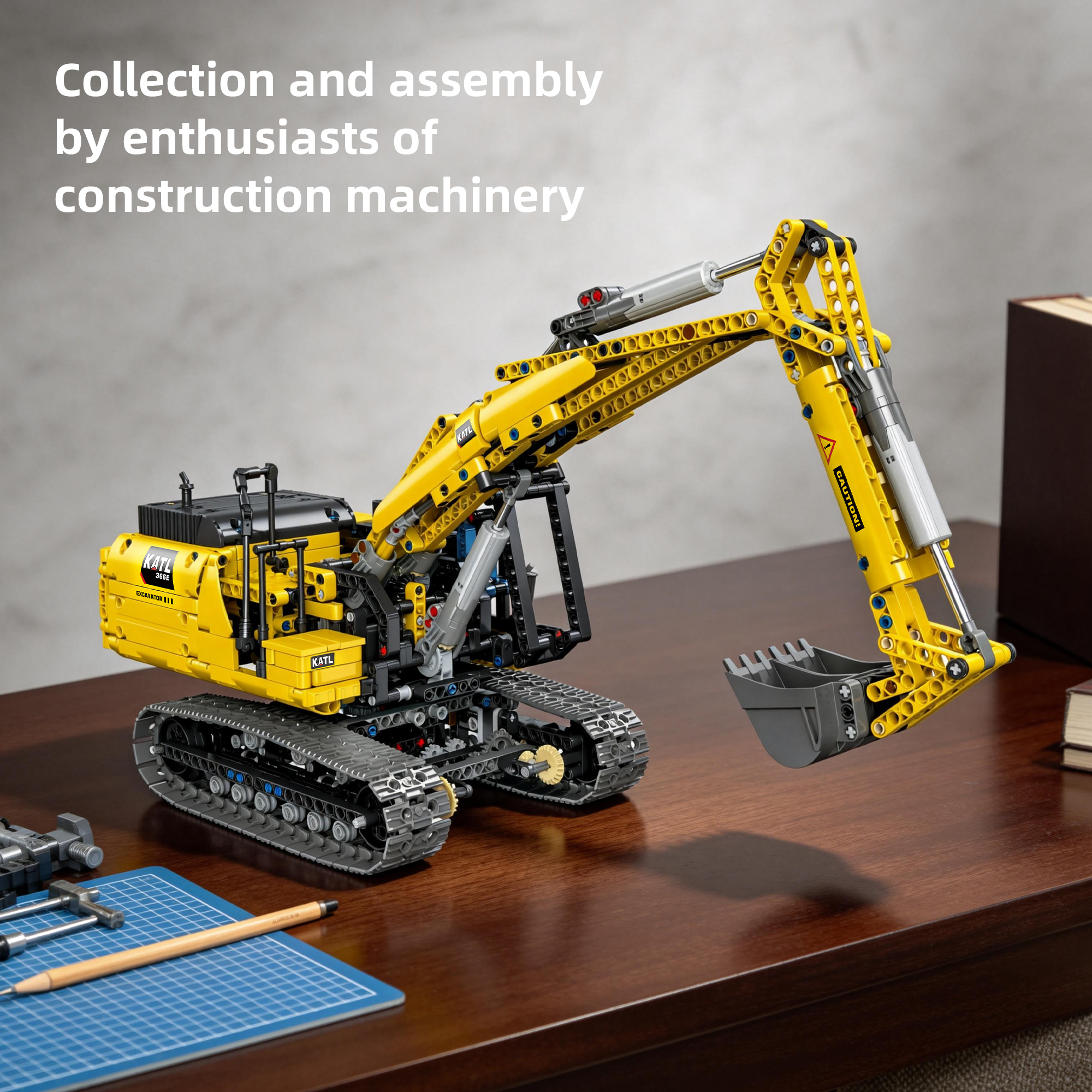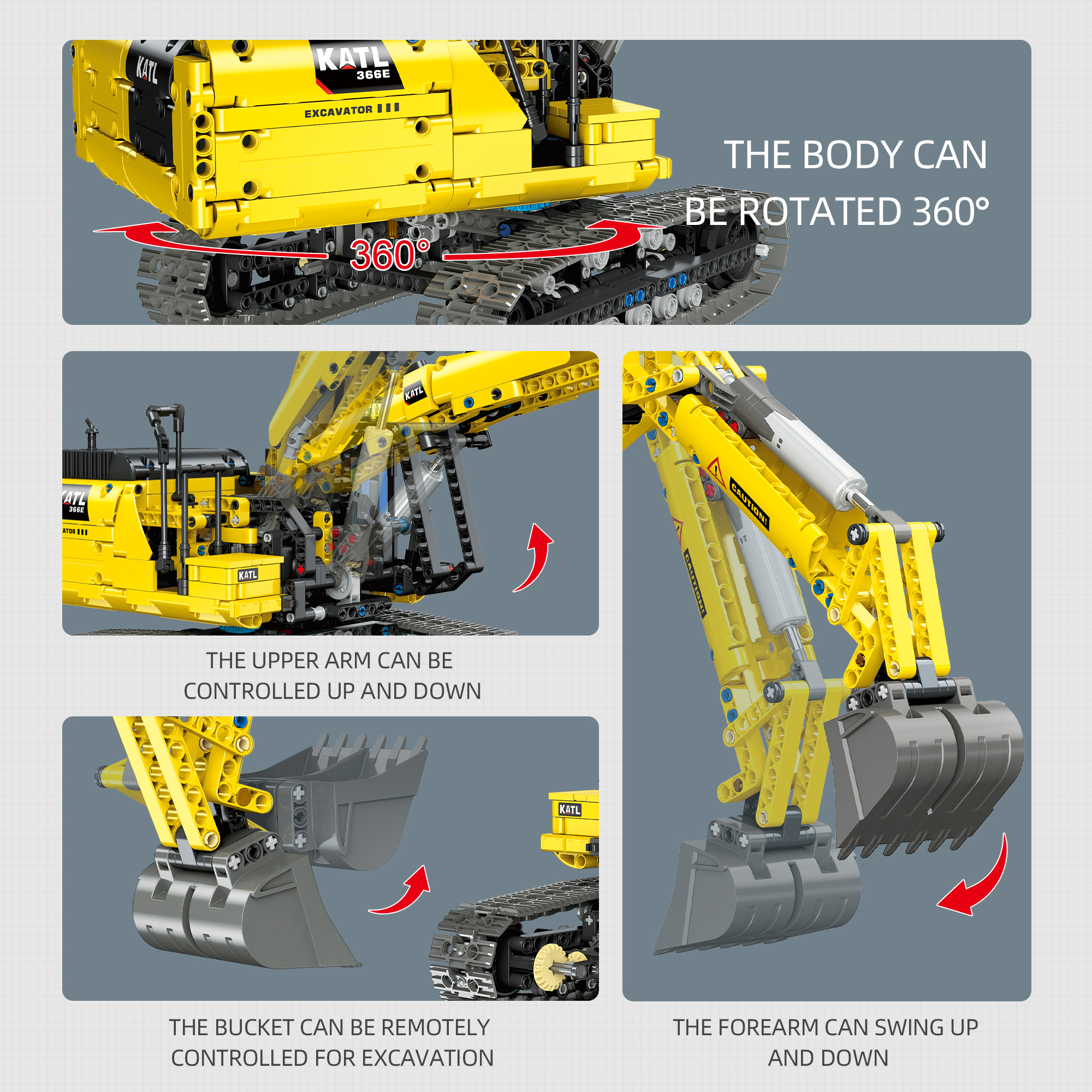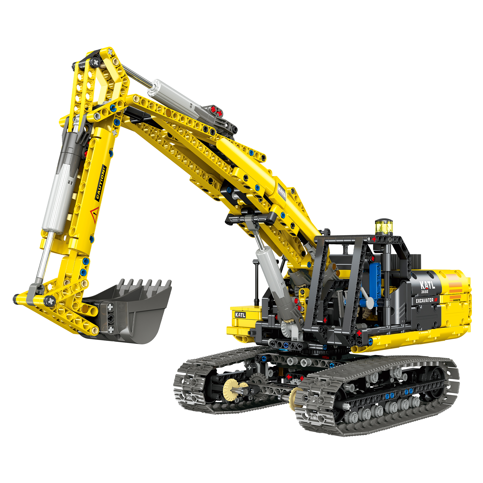 DIY Building Block 1:20 Full-Function Crawler Excavator – Simulates the structure of a real excavator. Equipped with a power kit, it unlocks more ways to play, featuring rich movable mechanical details. Experience the structural logic of construction site operations: the body can rotate 360°, the mechanical boom and arm can swing up and down, and the bucket can be remotely controlled for digging. Immerse yourself in the charm of engineering machinery. Once assembled, it can serve as a unique home decoration piece – an excellent choice for engineering machinery enthusiasts and building block collectors.