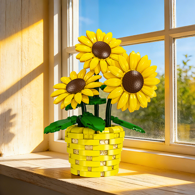 This Potted Sunflower Building Set makes a perfect desk decoration.