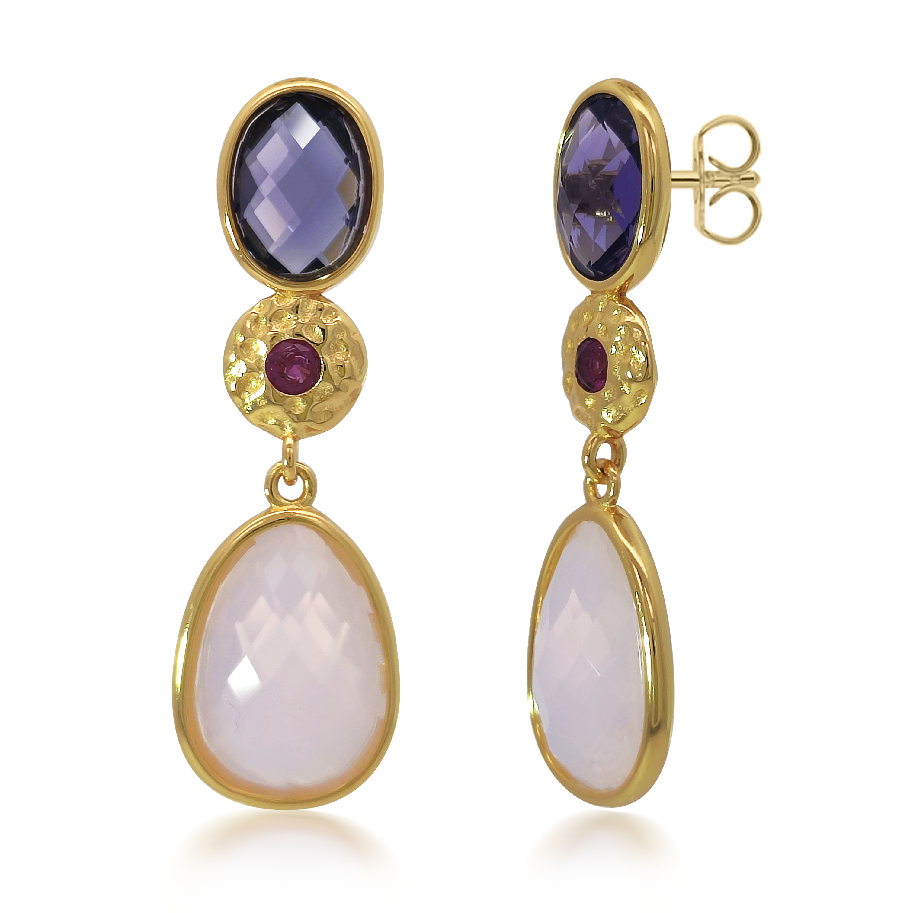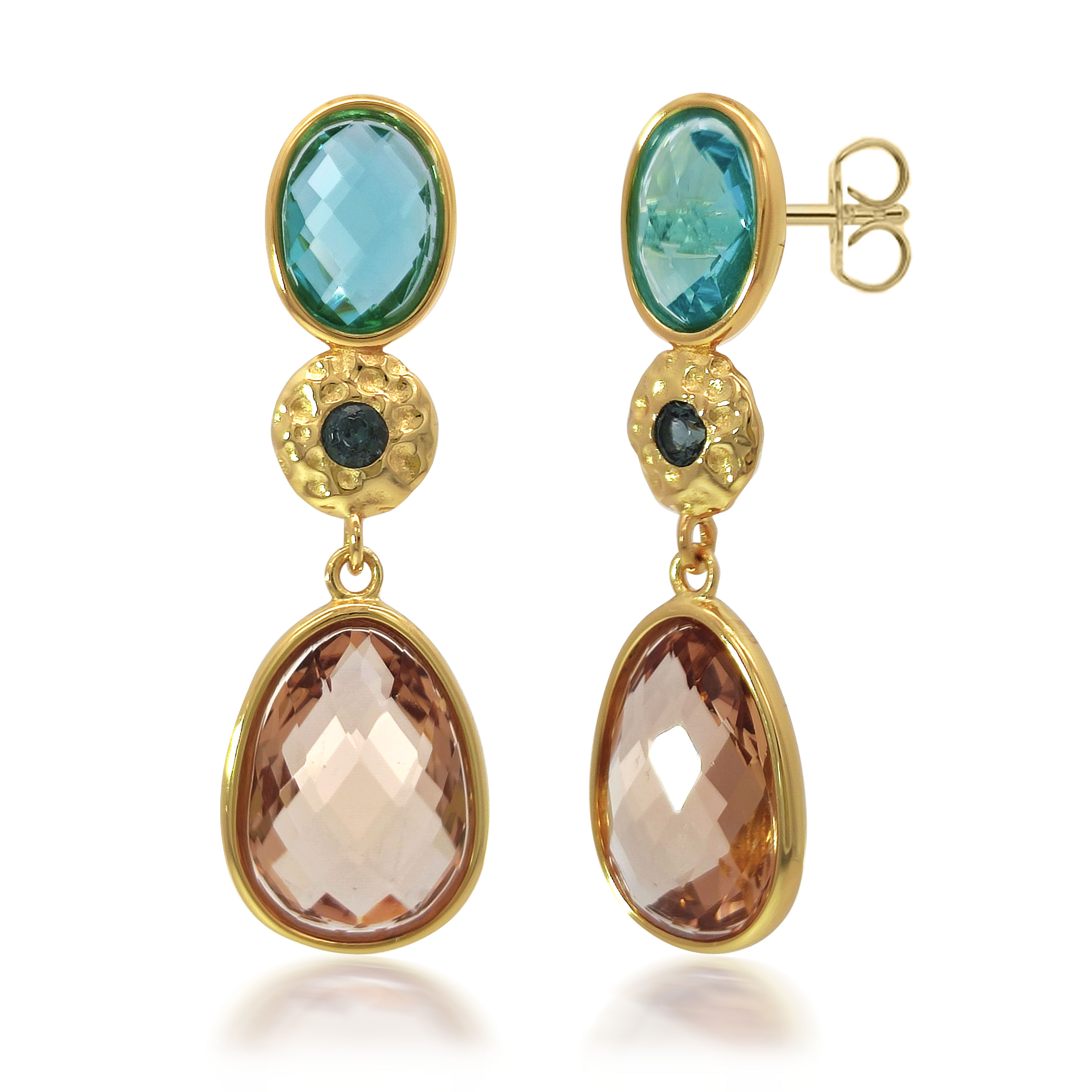 925 silver earring, total length: 30.8CM, With color crystal stones