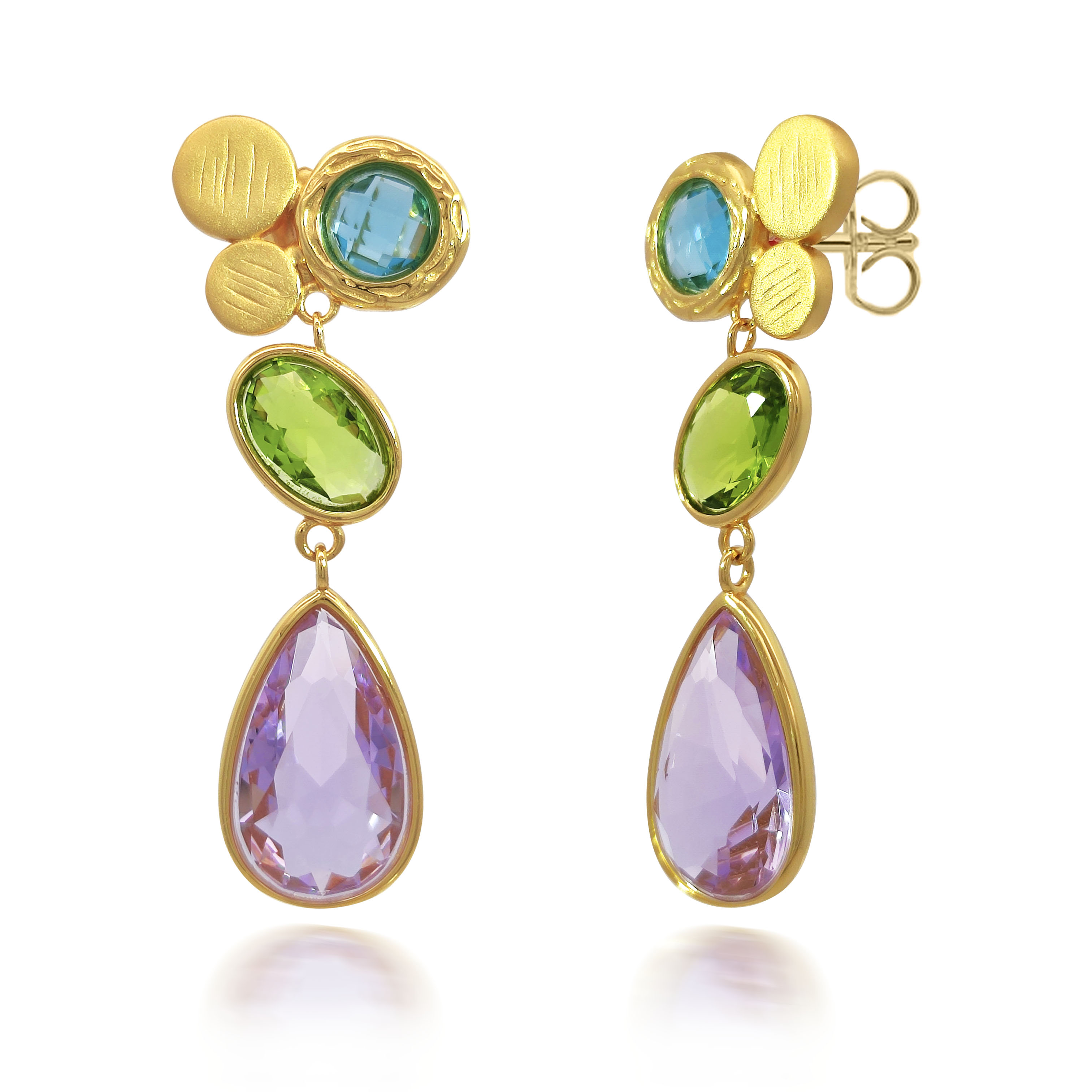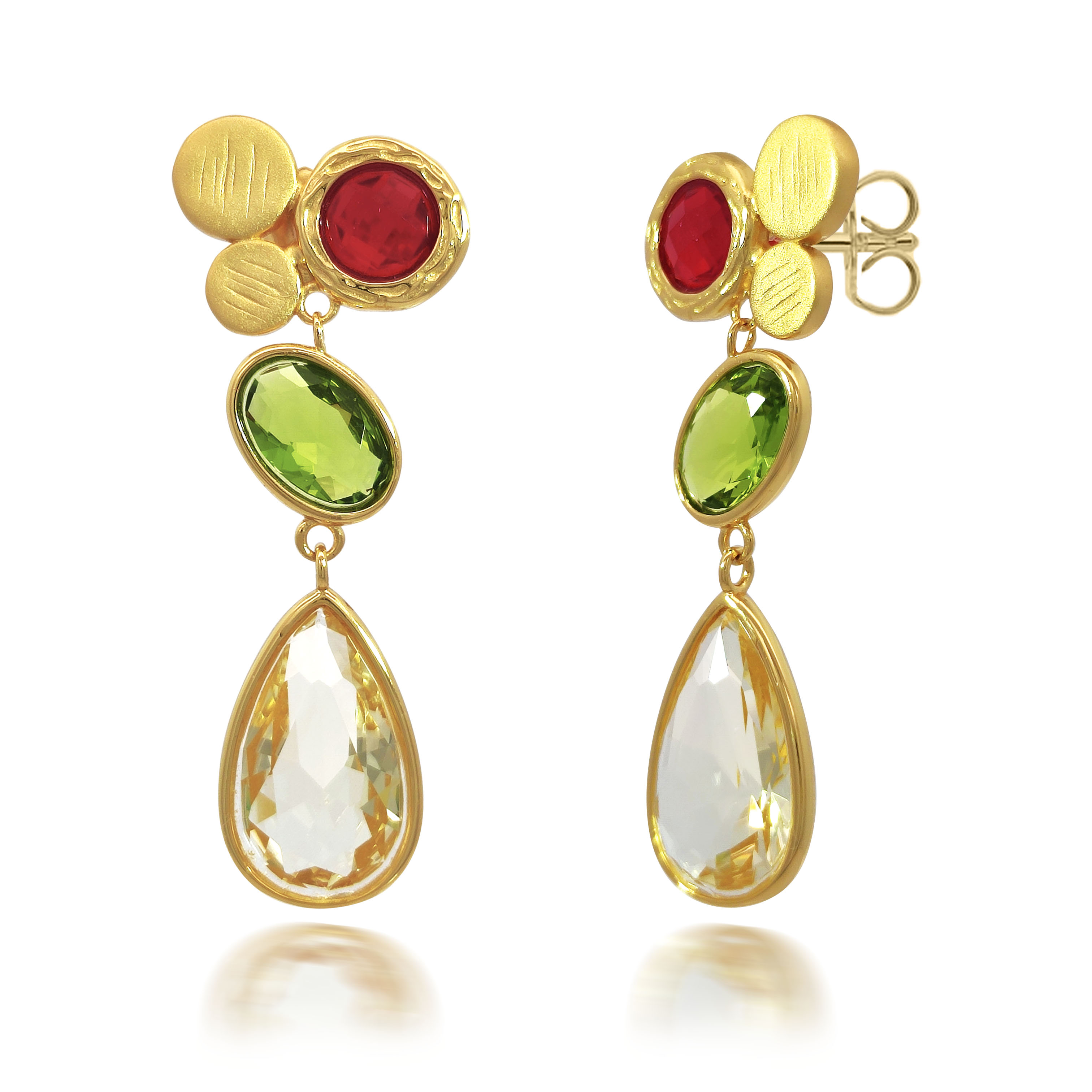 JMJ-E25003 silver earring with color crystal stones, total length: 35CM