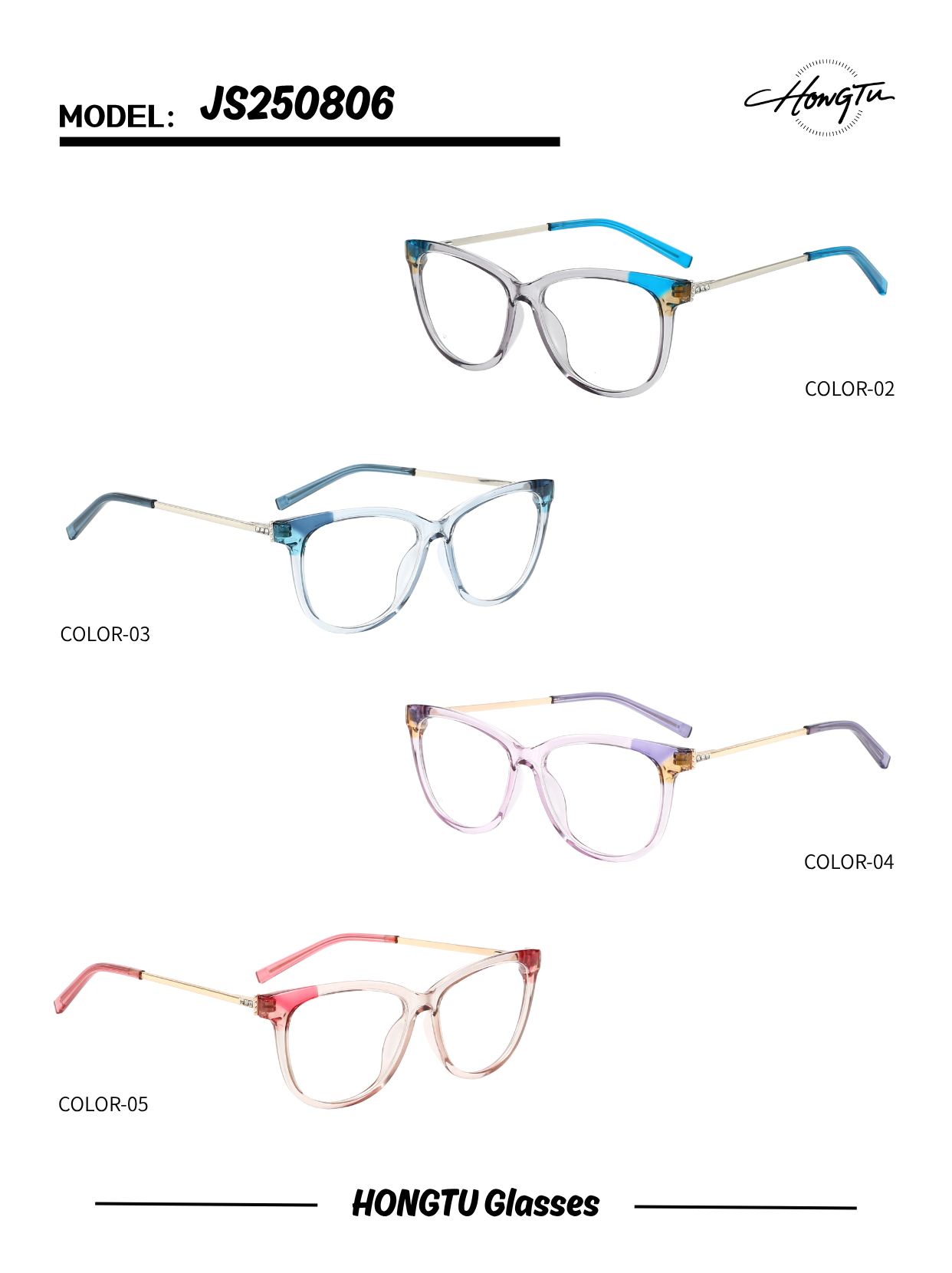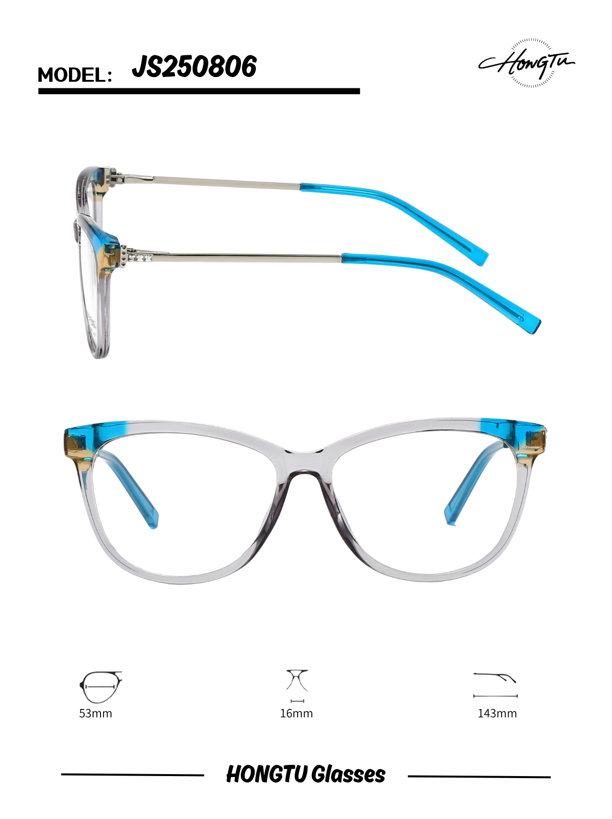 Featuring a sleek profile with 53mm lenses and a narrow 16mm bridge, the JS250806 ensures a lightweight and snug fit. Its 143mm temples and four stylish color options (COLOR-02 to COLOR-05) make it a go-to choice for refined, daily wear.