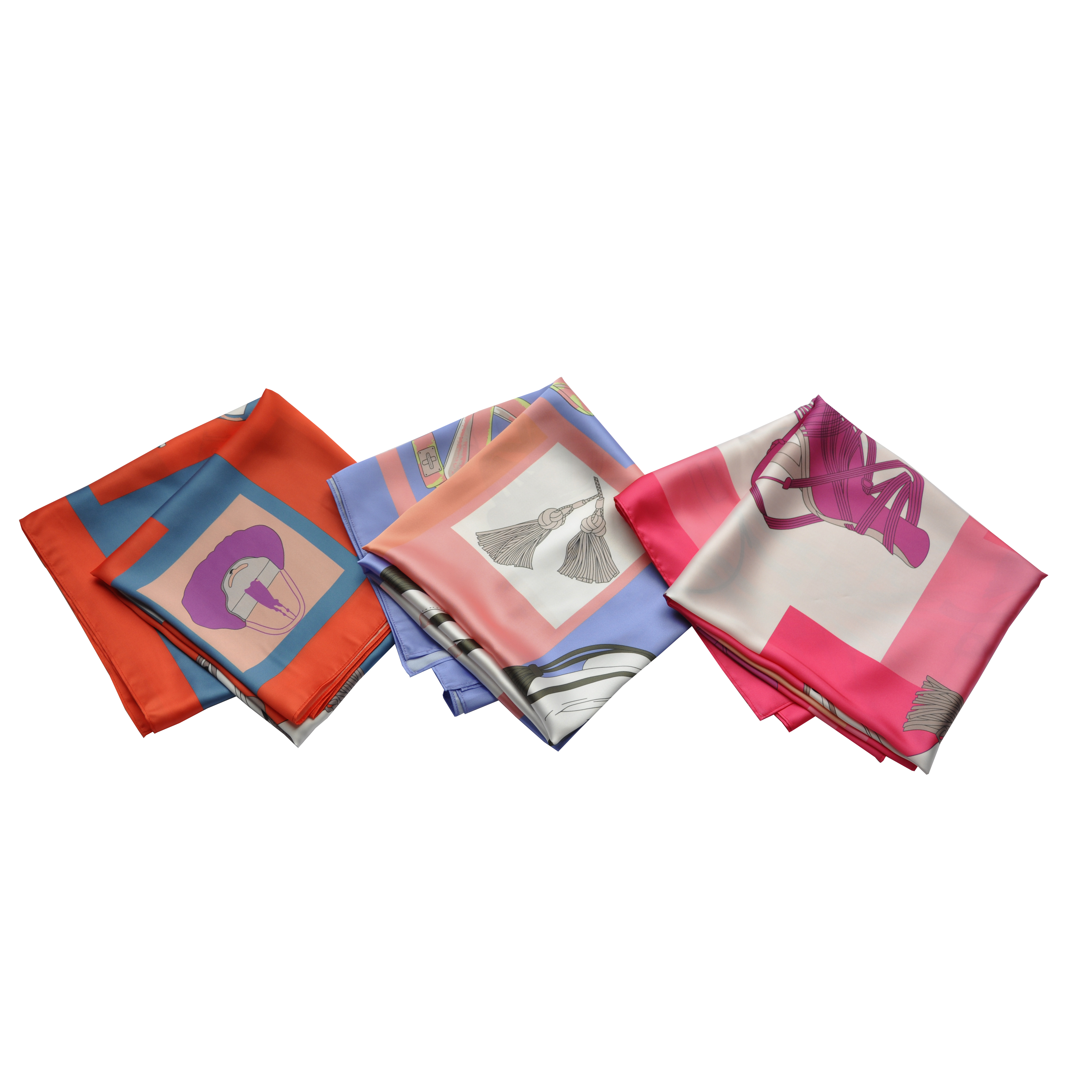 JSS0003E 100% Silk Fashion Colorful Print Scarf Handkerchief