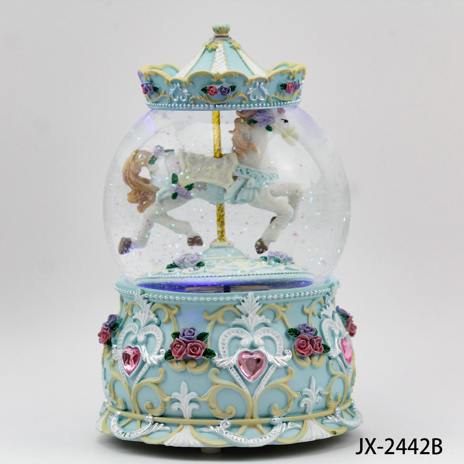 1.100mm globe size 2.Polyresin musicbox 3.Internal rotation