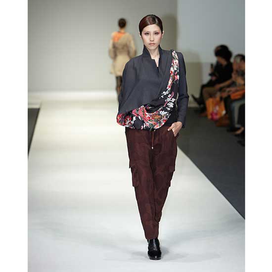Displayed here is a set of jacket and pants specially designed for ladies. The jacket is accented with floral details for added style. This women’s wear set is ideal for both weekday and weekend looks.
