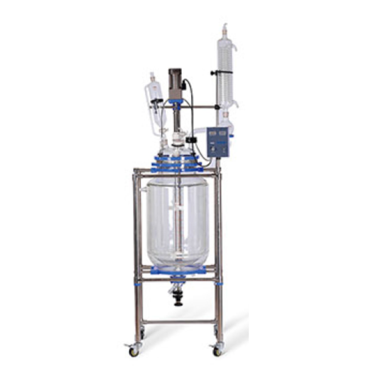 Jacketed glass reactors are designed for synthetic reaction of different types of materials in a controlled temperature and vacuum environment. Each reactor features adjustable stirring speeds and a constant pressure feeding