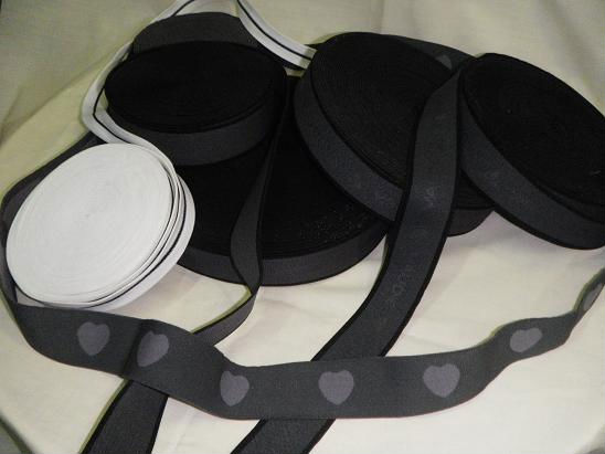 Displayed is a black jacquard tape featuring grey heart shaped pattern. This jacquard tape is well-suited for making different types of garment products. The jacquard tape comes in various designs which suits customers' needs.