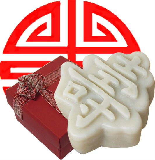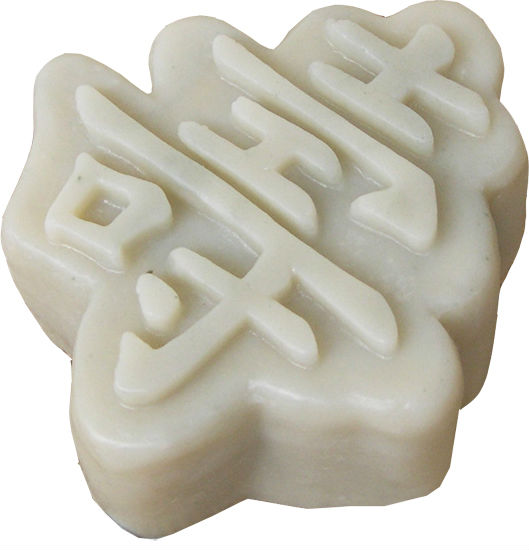 This soap bar is crafted as a Chinese character "Shou" which denotes longevity. Its natural color comes from reef deep green slime and green clay. Receivers will enjoy great skin revitalizing effects with the soap.