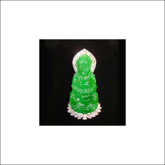 • Jade is cut as a Buddha sitting on a diamond lotus flower
