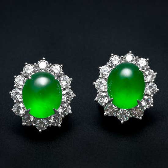 This earring with a floral shaped design features a bright oval jade in the middle. It is also adorned with silvery hued edges for a charming touch. This fancy jade earring goes great with your elegant looks.