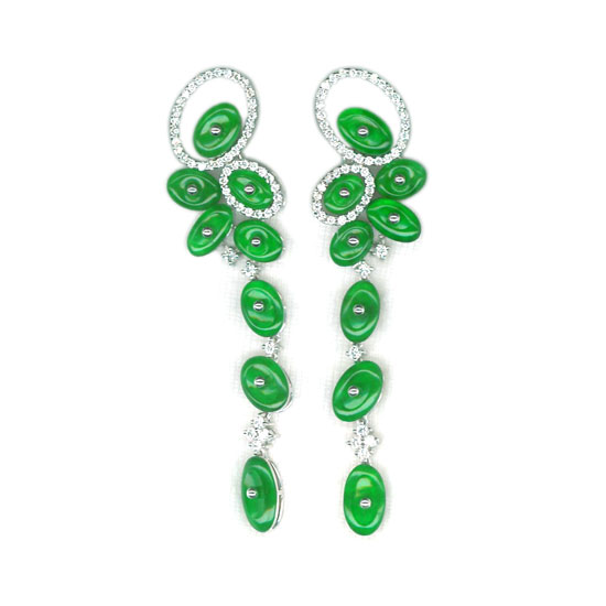 This dainty earring comes with bright oval jades alternating with sparkling diamonds. It is processed under strict quality control to offer it a glamorous look. This draping earring is a tasteful addition to your jewelry collection.