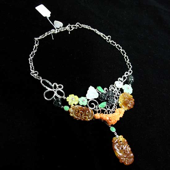 The ravishing ladies' necklace flaunts a lustrous sterling silver setting, promising long-lasting shine with perfect radiance. Meticulously crafted with dazzling pendants sculpted from jadeite and coral stones, this luxurious necklace takes your breath away with its irresistible beauty. This stunning necklace is the perfect piece for your jewelry collection.