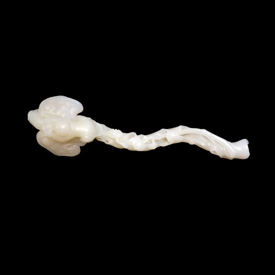 Ruyi is a Chinese ceremonial scepter that symbolizes power and good fortune. This ruyi is meticulously carved from white jade. Its beauty is greatly magnified by the superior craftsmanship of skilled artisans.
