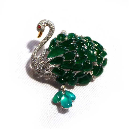 Featuring the design of an elegant swan, this jewelry brooch is accented with jade and white diamonds. The pretty brooch is crafted of 18K white gold with a highly polished finish for an elegant look. The timeless brooch makes a wonderful addition to your jewelry collection.