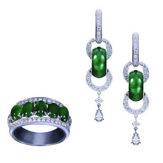 This jewelry set is made of 18K white gold and is embellished with well-cut diamonds, showcasing a sense of opulence. This jewelry set is an ideal set of jewelry for ladies. Complete your elegant look with this sophisticated jadeite diamond jewelry set.